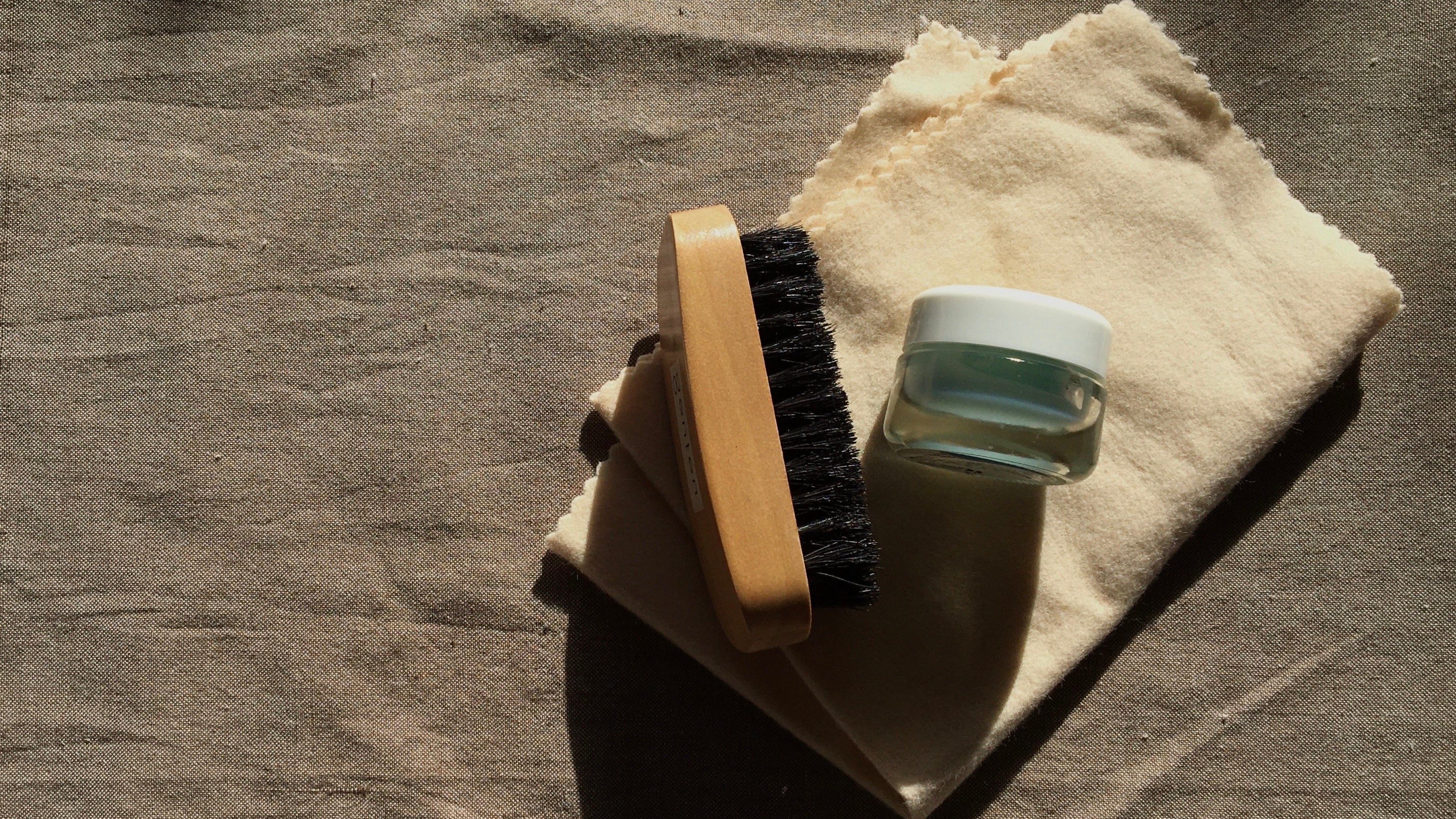 ブラシは柔らかい山羊毛や豚毛がおすすめ。汚れを拭いたり、クリームを塗るときに使う布は、綿素材の柔らかいものを準備しましょう。使い古しの下着や靴下をお手入れ用に取っておくと良いですよ。注意したいのが、タオルなどの目が粗い布はNGということ。大切な皮革製品に跡が付いたり傷めてしまうことがあります。
