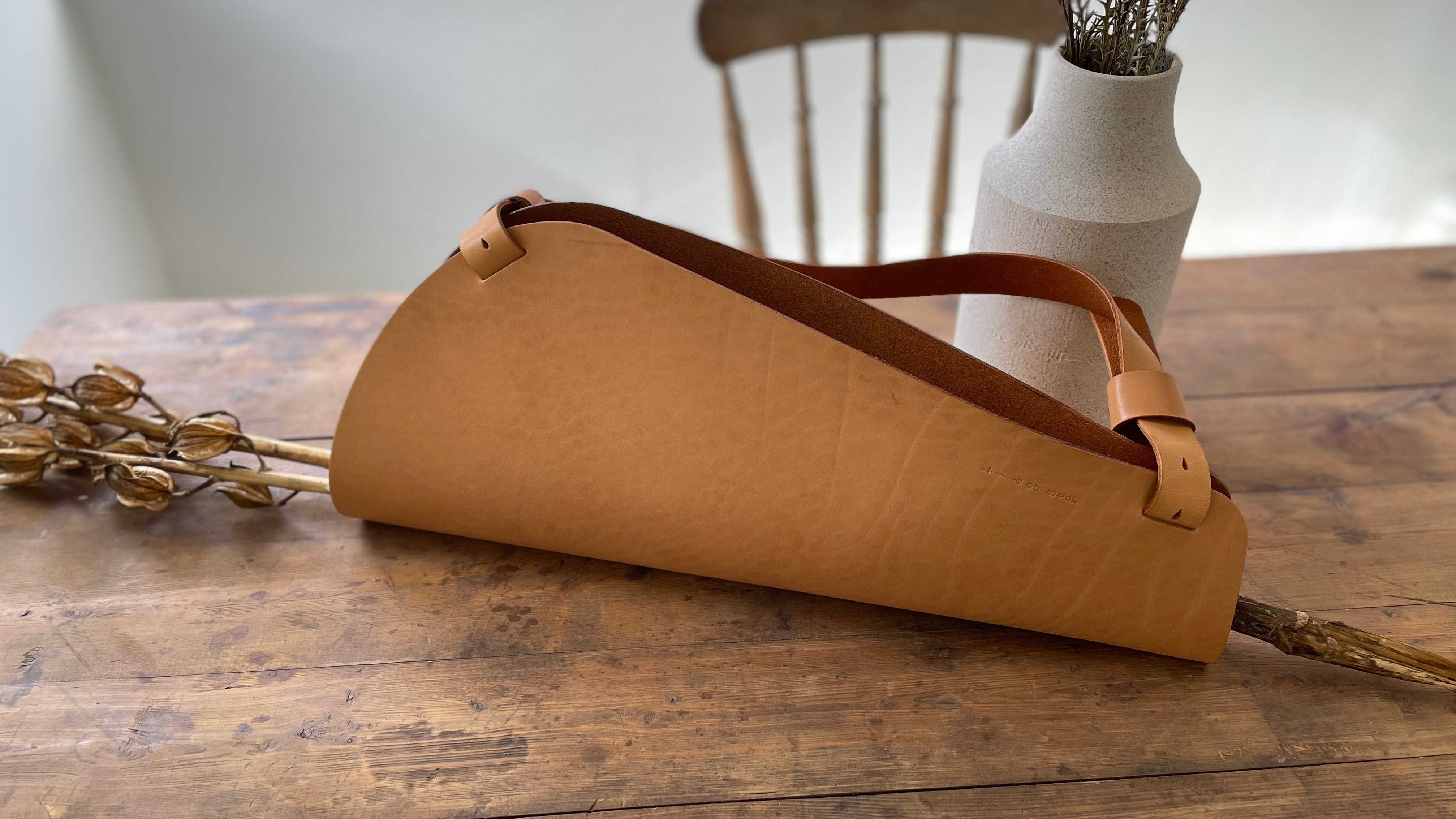 ヌメ革が使われたアイテムは、使い始めは繊維が固くてキュッと締まっているのでゴワゴワしていますが、使っているうちに繊維が少しずつほぐされることで柔らかくなって、使う人の手や体に馴染んでいきます。