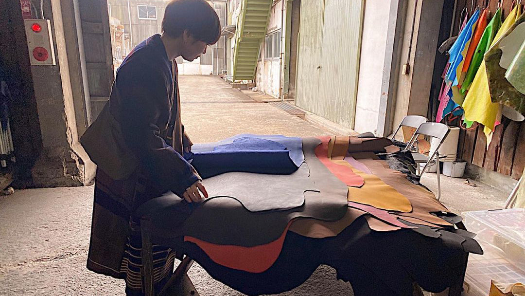 「以前は黒とヌメ色で生産していましたが、お客様からの要望で色物も取り扱うようになりました。車で1時間ほどのところにあるタンナーへ赴き、最近は職人さんと1からオリジナルの色出しのやり取りをして革を作りたいと考えています。今はまだ企画段階ですがいつかお披露目できるかもしれません。」