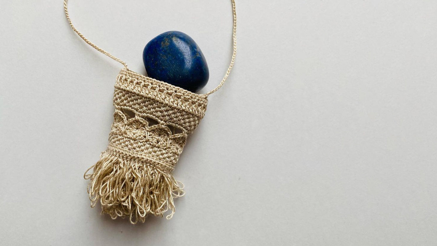 いくつものモチーフが重なり合った特徴的なデザインのmanamiさんのアクセサリーは、1本の糸で途切れることなく仕上げられています。この『波紋ネックレス』のような大作も1本の糸からできていると聞いて驚きました。 「中には1本の糸で仕上がっていない作品もありますが、ほとんどの作品は『1本の糸で繋がっていて、解くと1本の糸に戻る』ということが、なんとなく私のスタイルになっています」