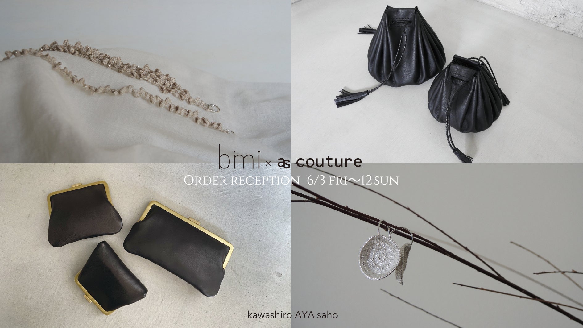 バッグや財布など服飾小物を中心に作品づくりしているascoutureとアクセサリーを制作しているbimi。