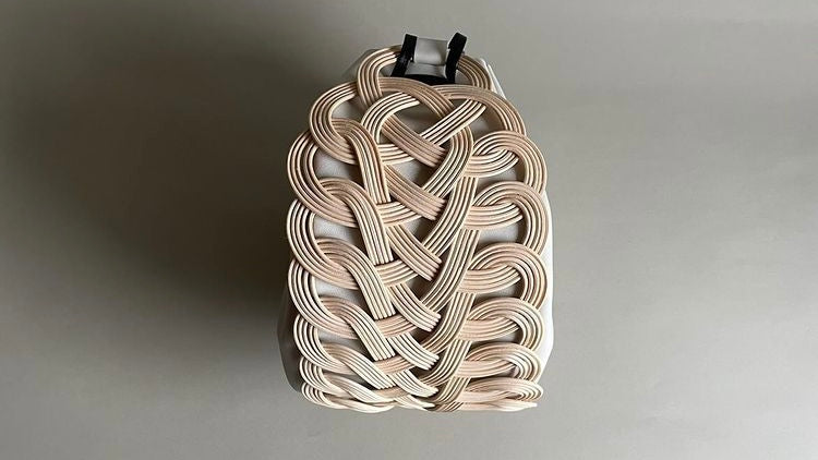 夏のイメージが強い籐と異素材を組み合わせ、一年を通して使えるデザインのかごバッグやラタンアクセサリーを製作されています。